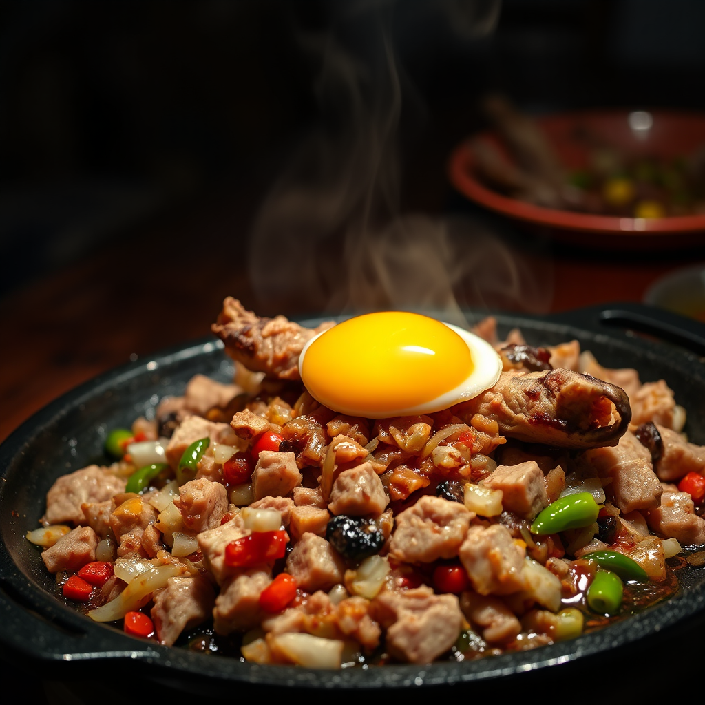 A popular sizzling dish of chopped pork face and ears, seasoned to perfection.